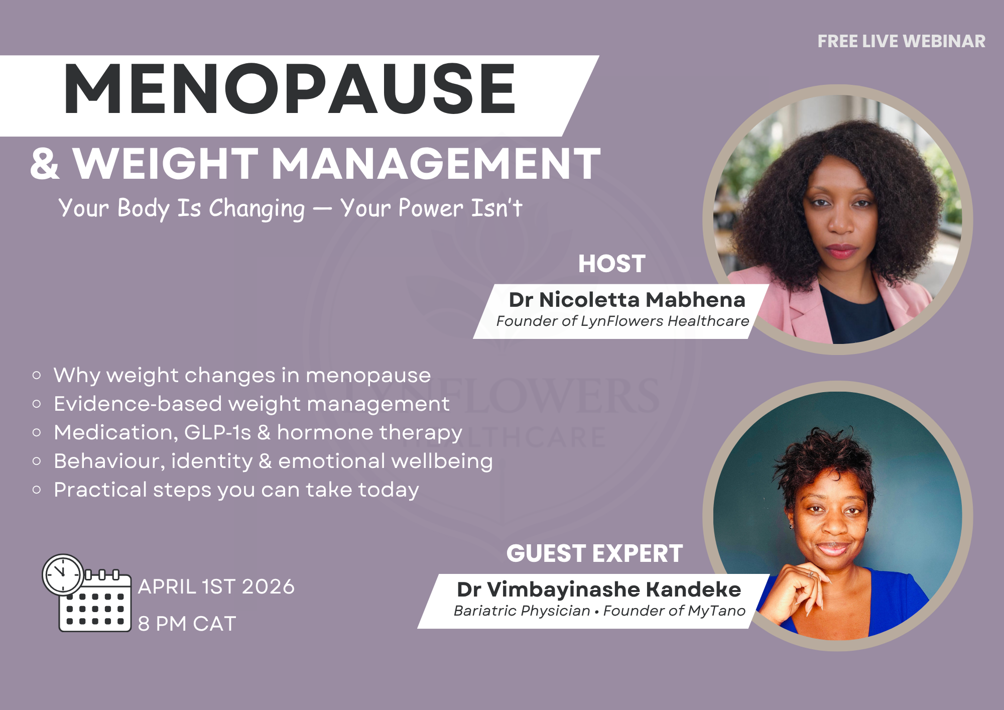 Our range of events are designed to help you own your life with vitality, joy and confidence as you navigate midlife and beyond.